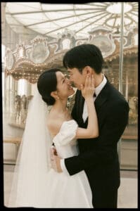 Calvin and Deborah got ready together at the One Hotel nearby early in the day. I LOVE when couples get together because it leaves more room for naturally intimate moments. Following getting ready, we explored along the waterfront to get photos at a bunch of iconic spots including the Brooklyn and Manhattan bridges, the Timeout Market and Jane’s Carousel. It’s really a dream location for wedding day portraits!