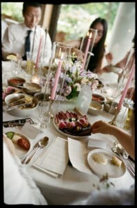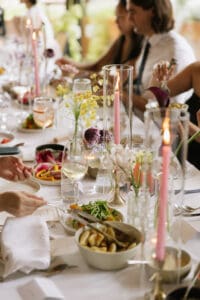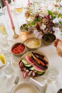 Celestine’s Mediterranean-inspired menu was perfect for the occasion: fresh, vibrant, and ideal for daytime dining. Guests enjoyed a leisurely multi-course experience, complete with seasonal dishes, bright flavors, and plenty of wine flowing freely. I love family style meal sharing at weddings, the photos are always so lively!